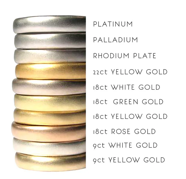 A classic choice, available in yellow, white, and rose variations. Gold is durable, but higher-karat gold (such as 18k or 24k) is softer and more prone to scratches. Gold is generally hypoallergenic, though alloys in white gold may contain nickel