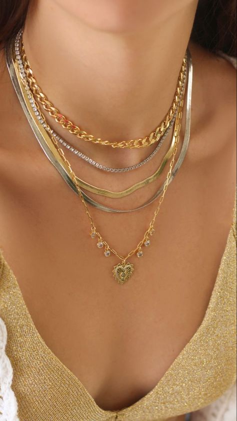 Combine necklaces of various lengths and styles, such as a choker with a mid-length pendant and a longer chain, to create a layered look. Mixing gold with silver or rose gold can add a modern, eclectic feel to your style
