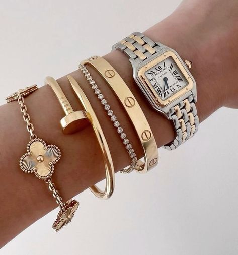 Try combining bracelets of different widths and textures, such as a chunky gold bracelet with delicate chains or a tennis bracelet. This adds a playful yet sophisticated element to your look